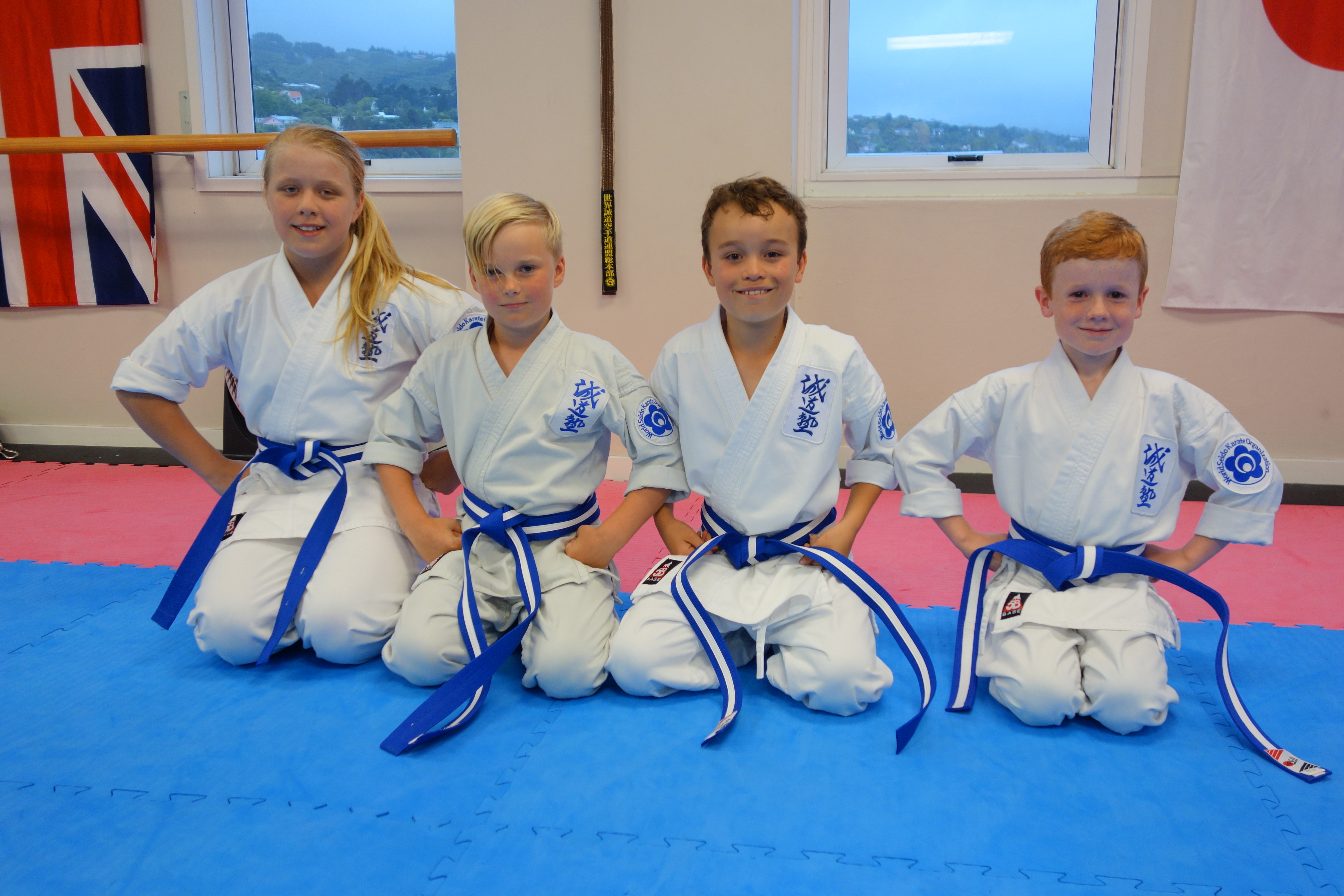 Junior Blue Belt Kata Team Left to right: Brierley Piper, Emily Wong, Gabriel O’Connell and Connor Piper